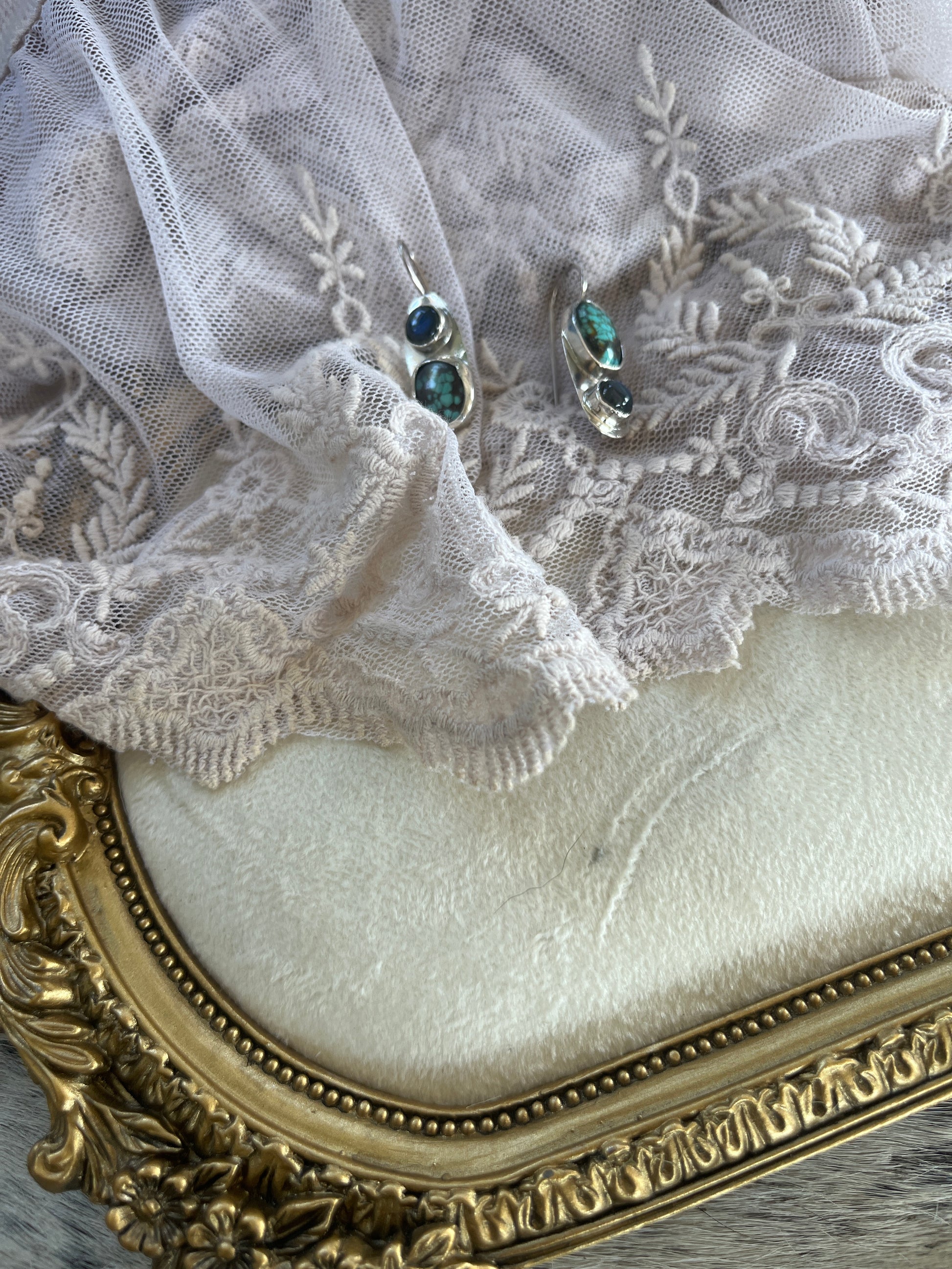Turquoise and Labradorite Sterling Silver earrings.